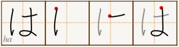 は(ha), ひ(hi), ふ(fu), へ(he), ほ(ho)