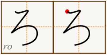 ら(ra), り(ri), る(ru), れ(re), ろ(ro)